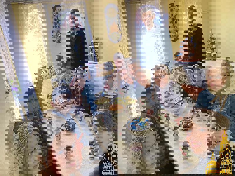 Новый учебный год к всеобщей радости начался с праздничного чаепития, за которым дети поделились, как провели летние каникулы, а далее последовали занятия: Закон Божий, пение, и прикладное творчество.