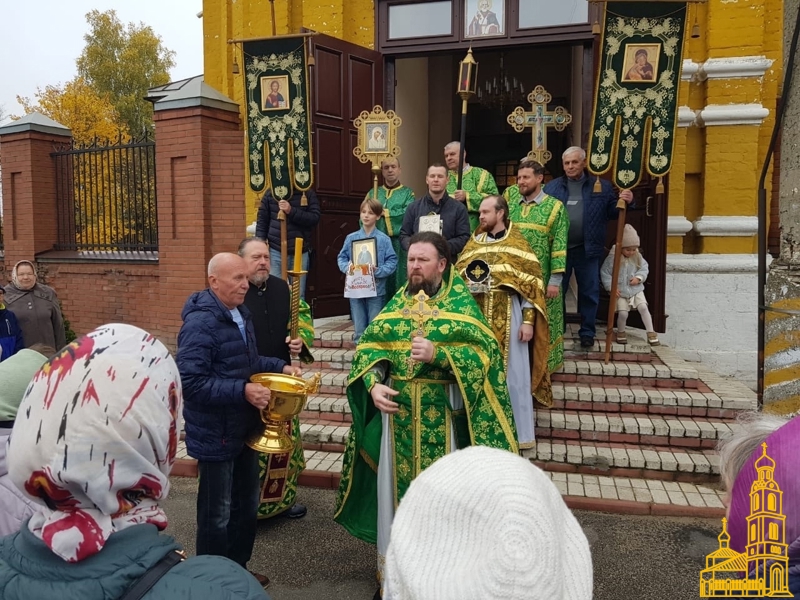 После заамвонной молитвы состоялся крестный ход вокруг храма, сопровождавшийся песнопениями в честь преподобного Сергия.