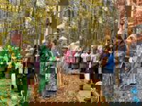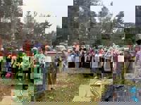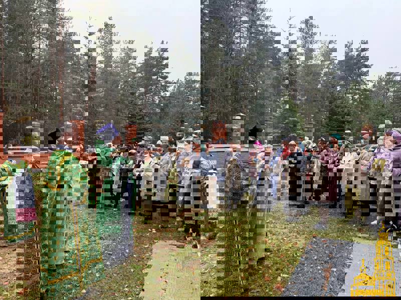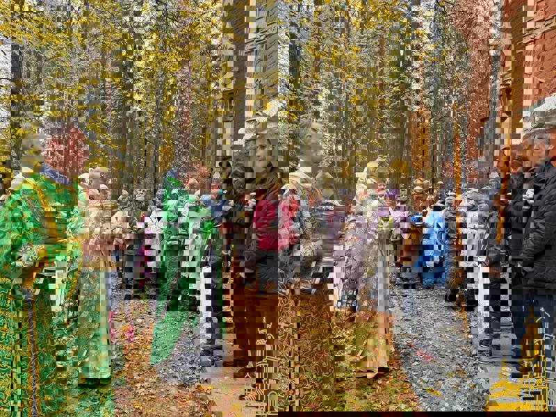 По завершении Литургии настоятель о. Сергий Шестопалов с прихожанами совершили Крестный ход вокруг храма, вознося молитвы преподобному Сергию.