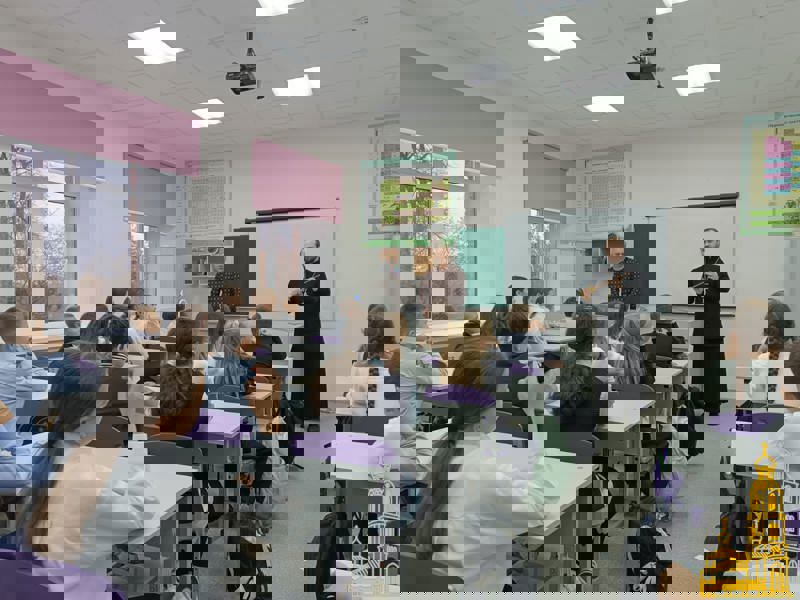 В МБОУ СОШ 2 г. Киржач на уроке 5-го класса с темой: "Как понять друг друга разным поколениям?" выступили помощник благочинного по работе с молодежью Киржачского округа иерей Димитрий Чибесков и главный специалист МКУ ЦРОДОУ Соловьева Т. В.