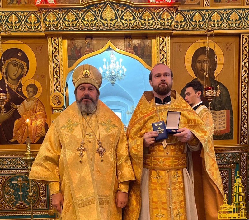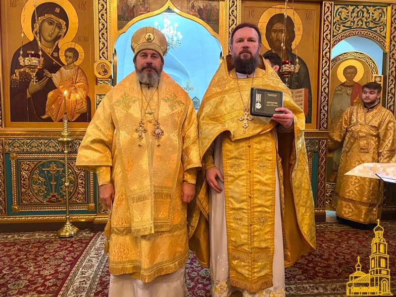 По окончании литургии во внимание к усердным трудам во славу Церкви Христовой, 30-летию священнической хиротонии и 15-летию служения в должности благочинного, протоиерей Димитрий Ершов, награжден медалью прп. Алексия Зосимовского II степени.