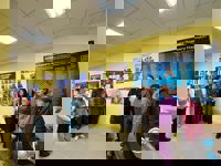 На открытии стендов были приглашены : депутат Законодательного собрания Владимирской области Доброхотов Андрей Николаевич, и.о. главы Горкинского поселения Бордюгова Екатерина Сергеевна, руководитель группы "Своих не бросаем", мамы и жены бойцов.
