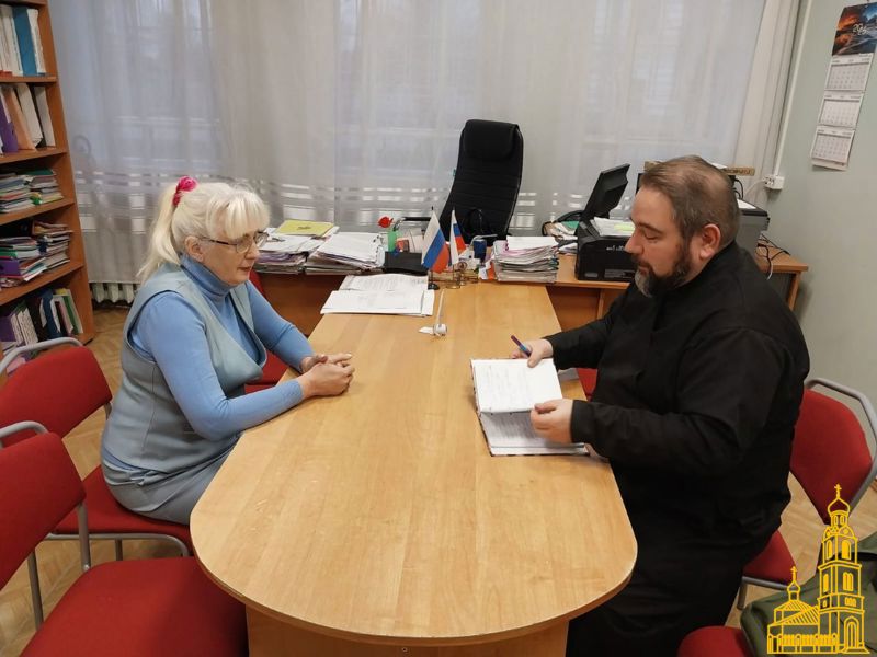 Протоиерей Димитрий Ершов и диакон Александр Ломтев встретились с Евсеевич Ольга Николаевна — начальником Управления образования администрации Киржачского района