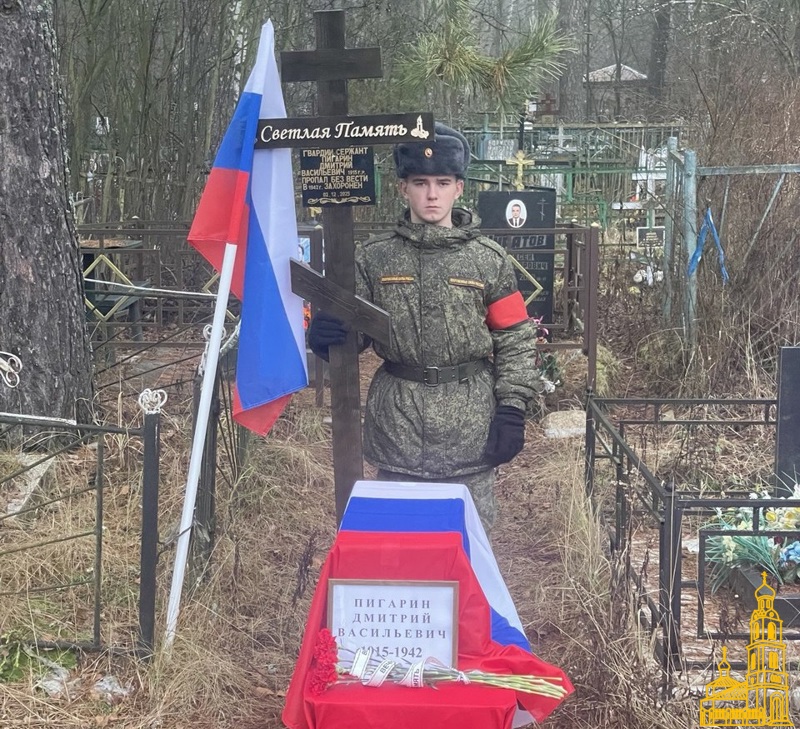 2 декабря прошло отпевание и перезахоронение Дмитрия Васильевича Пигарина, уроженца деревни Ефремово Киржачского района. Дмитрий Васильевич ушел на войну в 1941 году, а в 1942 году под Курском пропал без вести. И вот, спустя 83 года, благодаря поисковому отряду из Курской области, были найдены его останки на месте захоронения рядом с госпиталем, в котором он находился после ранения. Этот госпиталь сожгли фашисты в далеком 1942 году, а находившихся в нём раненых бойцов и мирных жителей расстреляли.