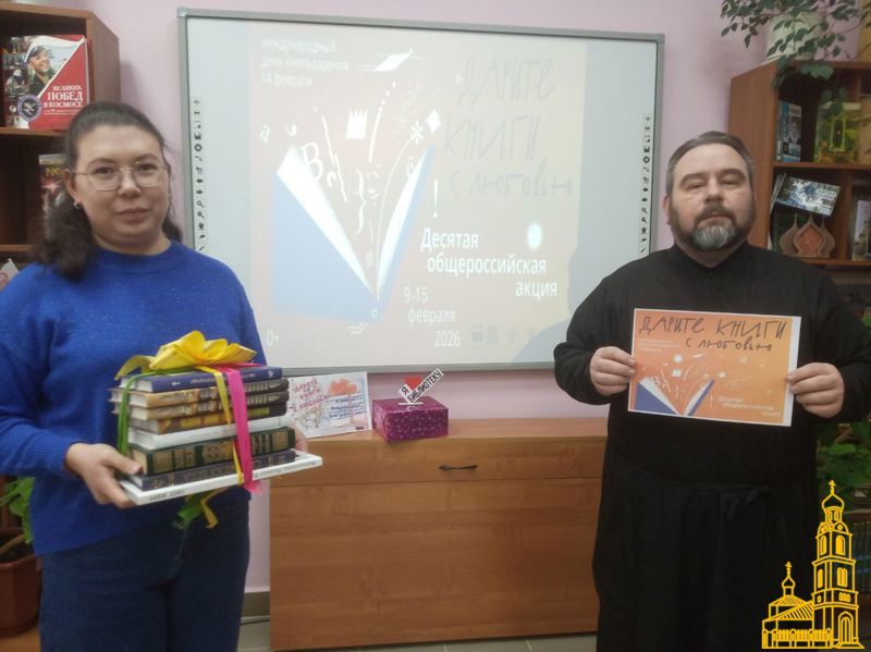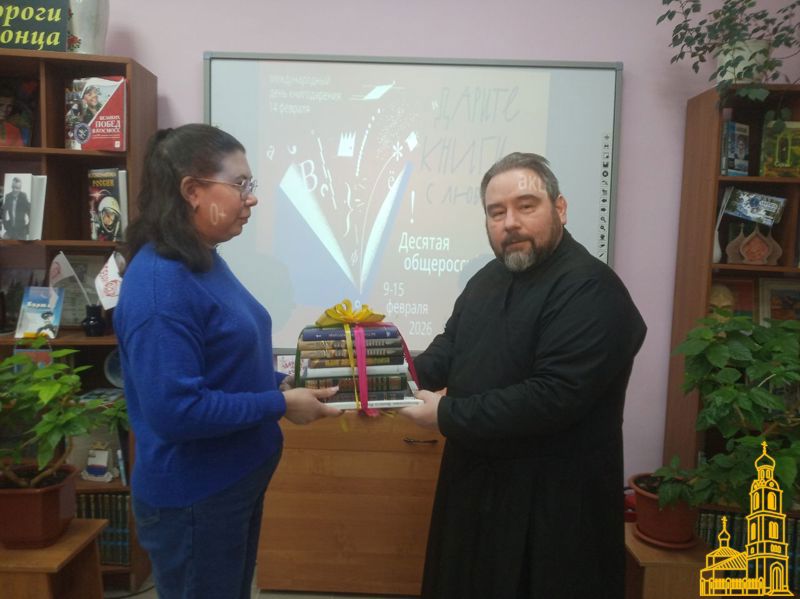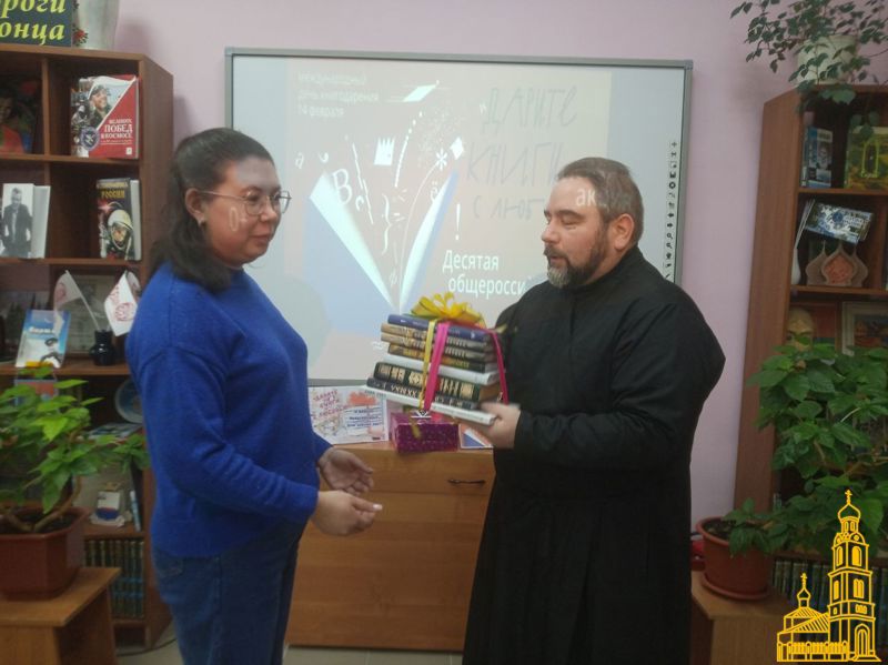 В рамках взаимодействия Церкви и учреждений культуры в ходе ежегодной акции "Подари книгу" клирик Свято-Никольского храма в Заболотье диакон Александр Ломтев подарил в городскую библиотеку книги религиозного содержания.