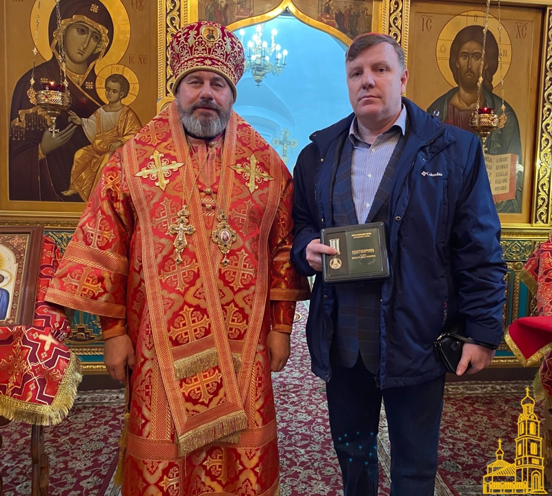 В завершение литургии во внимание к усердным трудам и празднику Святой Пасхи командир в/ч 55169-ВД полковник Пащенко Сергей Юрьевич награждён медалью преподобного Алексия Зосимовского III степени.